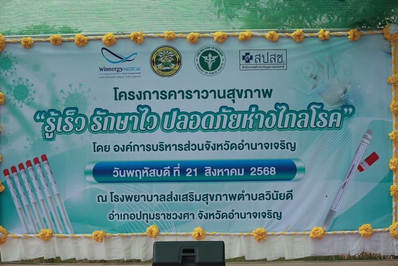 Winnergy Medical Public Company Limited (WINMED) joined hands with the Amnat Charoen Provincial Administrative Organization and local Subdistrict Health Promoting Hospitals (SHPH) to organize the “Healthy Caravan: Early Detection, Timely Treatment, Safe from Disease” event at Winai Dee SHPH, Pathum Ratchawongsa District, Amnat Charoen Province.